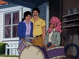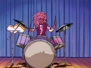 Shana wishes she could set fire to her drum set though. Shana likes the drums, but she'd rather play her funky looking triangle guitar instead. The problem is that Jem, Kimber, and Aja play drums about the same way that a two-year-old plays, so Shana is pretty much left to waste away in her prison of percussion instruments.
