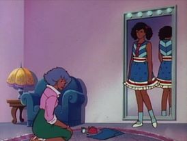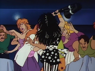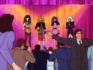 She has a great view of Jem using her JemStar earrings to transform into