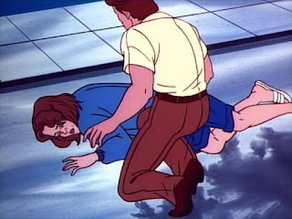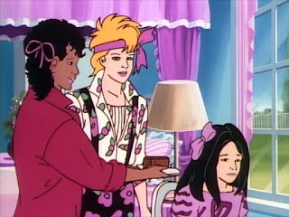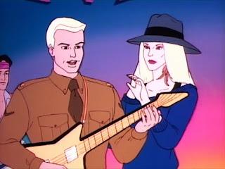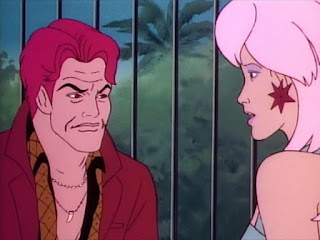However, one of the Holograms (I think it was Aja or Raya) comes up with the idea that since Ba Nee's father served in the army, maybe Riot could help. After all, his father served for the army. Perhaps he could get into a database for all soldiers who fought in the war. Jerrica seems to think that's a great suggestion, but knows that she'll have to dress in her Jem outfit to make that happen. Because as we know, Riot is as obsessed with Jem as he is with hair spray.